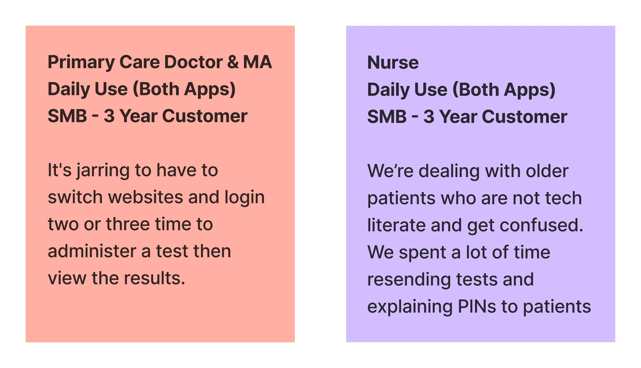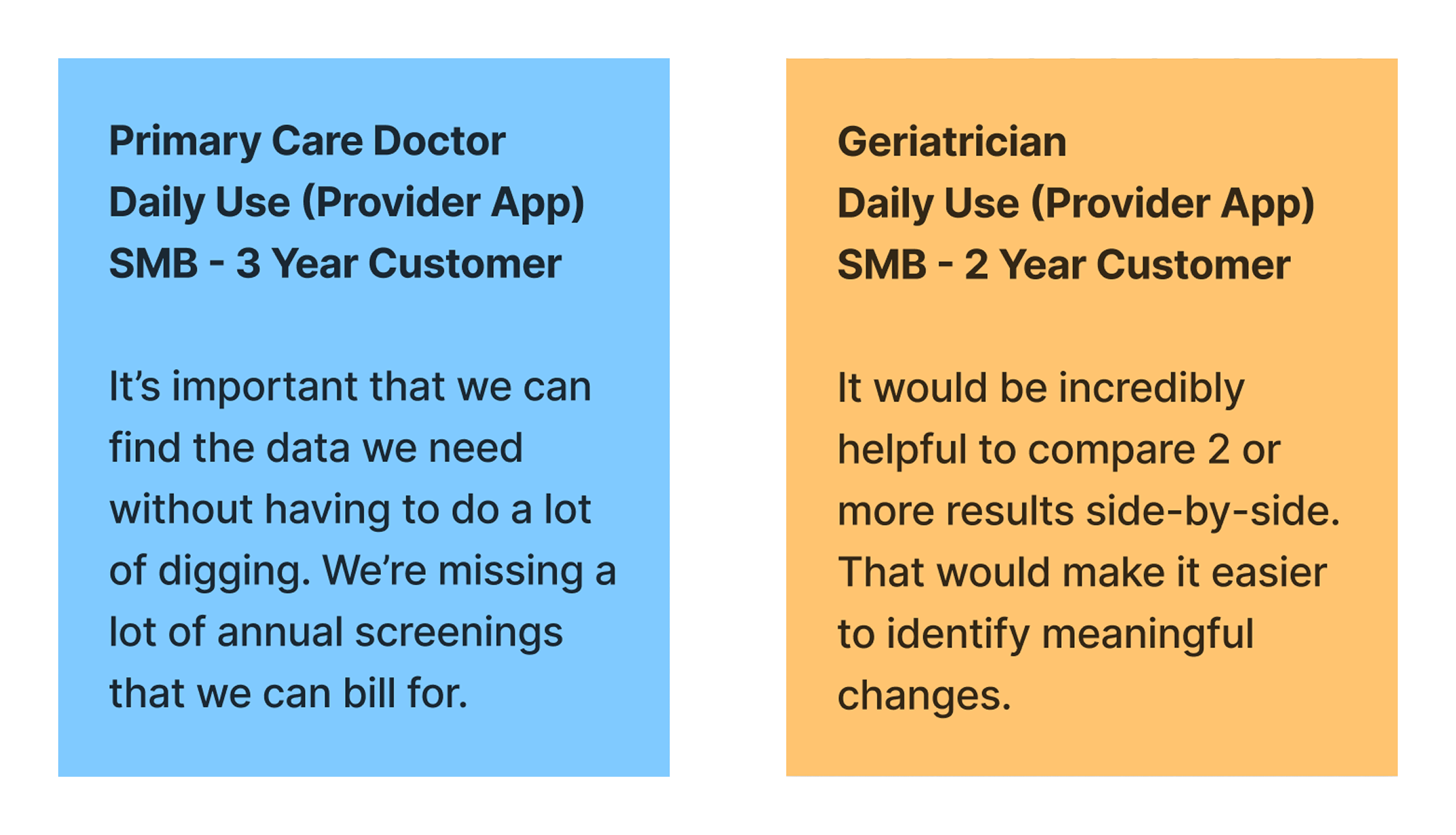 Over the span of three weeks we set up calls with several customers to discuss their experience with our products. We also visited a practice in Houston for a day to better understand clinical processes and workflows. Here are some of the key themes we identified: