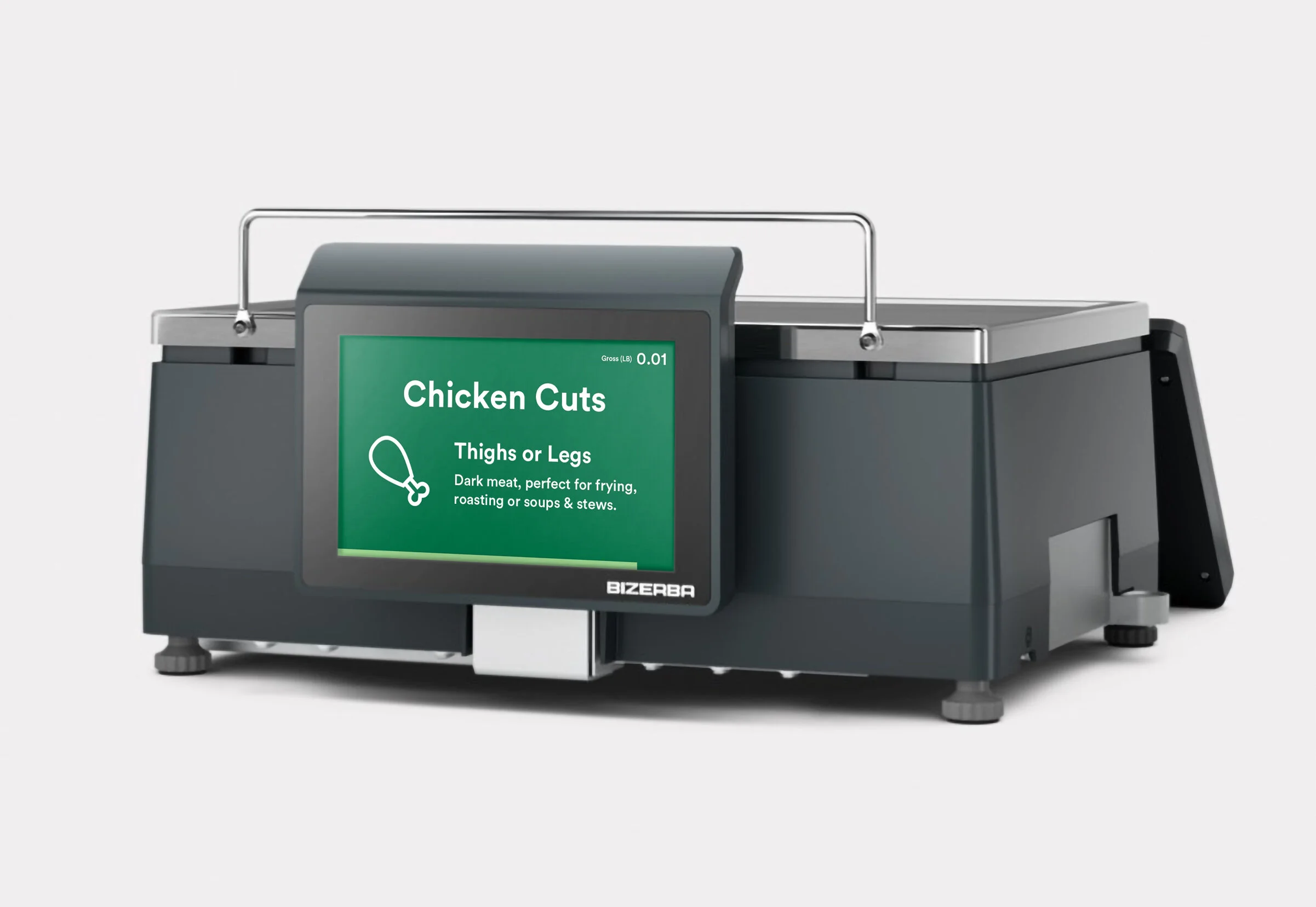 I served as the sole designer on this project, working in alignment with a separate team of two designers who created the team member interface that would work in concert with this customer-facing experience. The team member interacts with a digital touch screen on their side, entering product information and weighing products, which feeds the consumer-facing screen. This small screen tells the customer what is being weighed, its quantity, price per unit, and total cost.