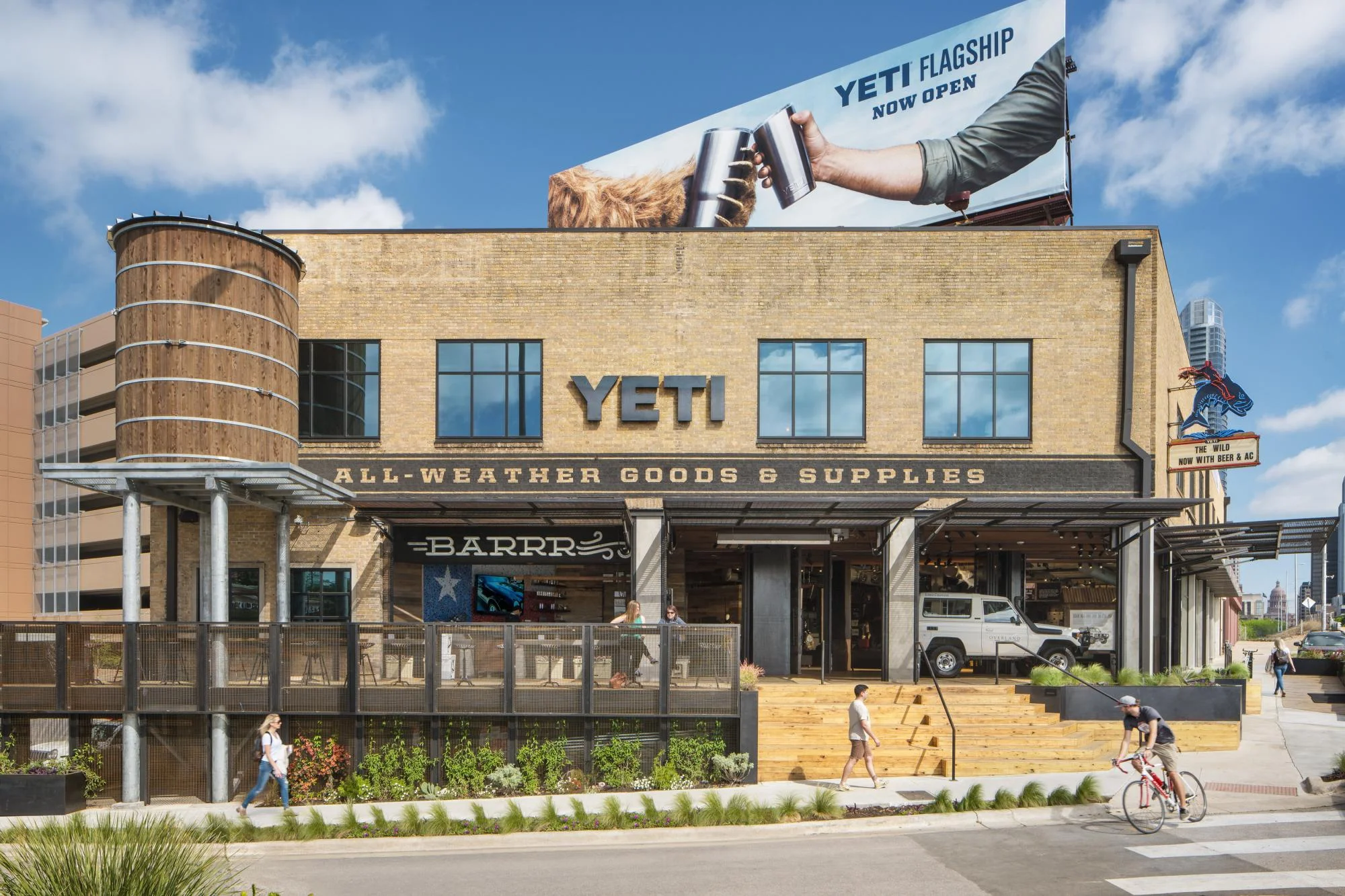 When YETI asked for help designing their flagship retail store, we said let's not build a retail store. Let's tell a story. The result is a gathering place for people to experience the wild. A space that features a bar, a bear, a stage, a string of tarpons, Aaron Franklin’s BBQ pit, Flip Pallot’s fishing skiff and a set of Evan Voyles custom neons.